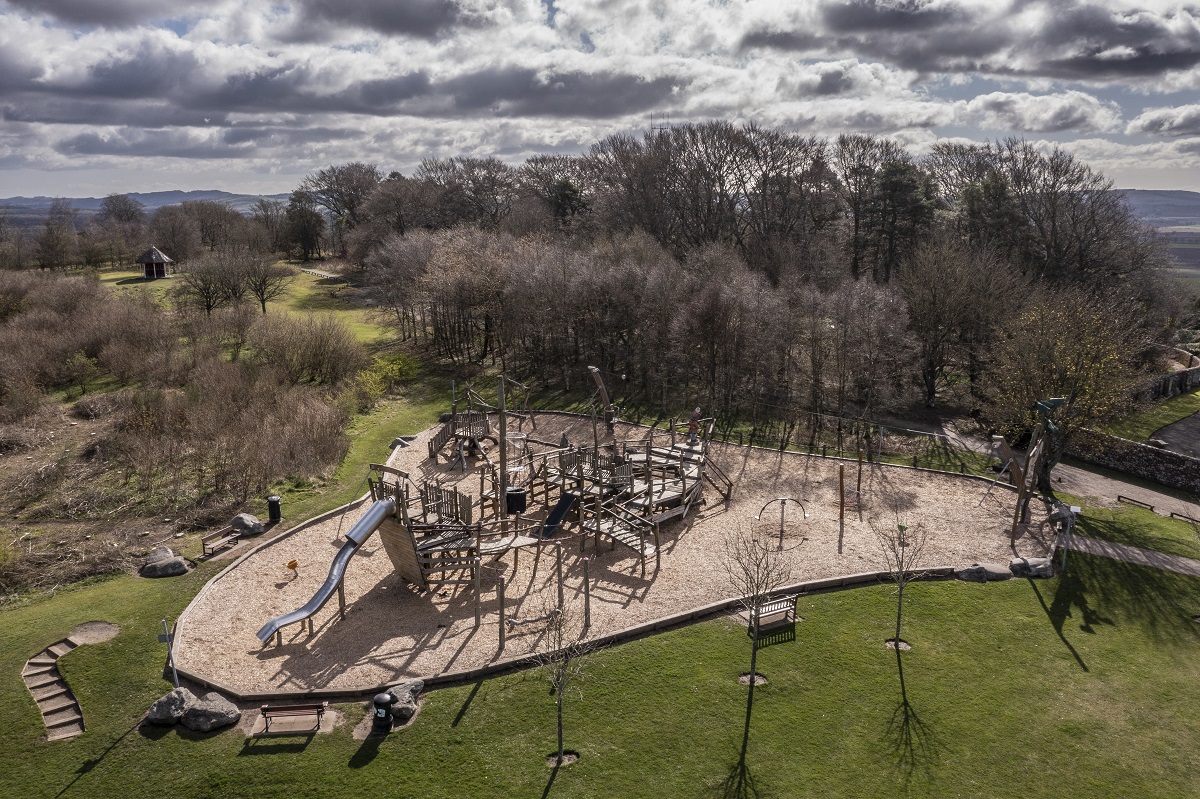 The park lies on The Hill close to The Pavilion which Barrie gifted to the town. In the park you can find play equipment themed on Peter Pan, Captain Hook and a crocodile. There is also a Lost Boys hideout, pirate ship and an aerial slide.