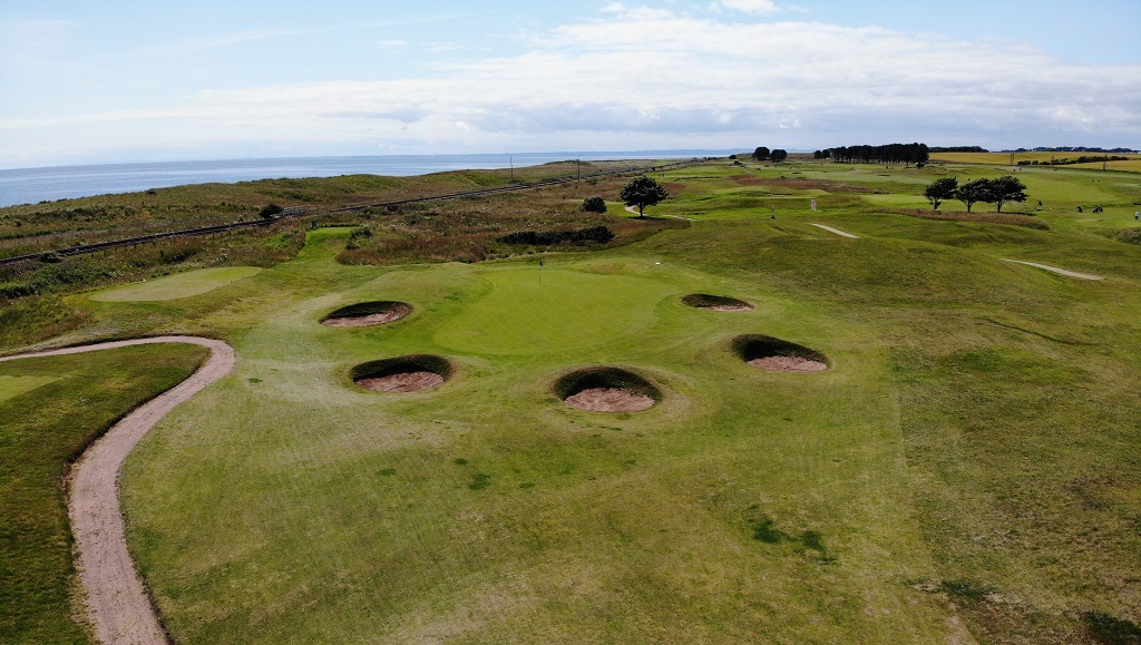 This challenging links course in Scotland was originally designed by Old Tom Morris in 1877, however it has since been redesigned, first by Willie Fernie in 1907 and then altered again by James Braid in 1931. It features seven opening holes that head straight out into the links, three cut back and the rest follow the main East Coast railway line that separates the fairways from the beach.