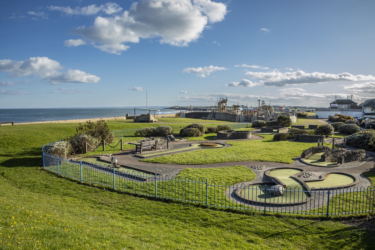 The area provides wooden adventure playgrounds for older and younger children plus a large splash area and paddling pool with water-based play equipment and in the summer a 9 hole Crazy Golf Course and 2 Tennis Courts. Make sure you remember your towels!