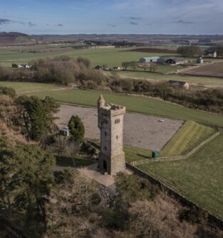 Balmashanner Monument, Forfar: This striking war memorial stands proudly above the town, offering a powerful tribute to those who served and a magnificent viewpoint over the surrounding countryside. The building was dedicated by Queen Mary on 11 September 1921 and comprises a square tower, with battlements and turret, built from local sandstone.
