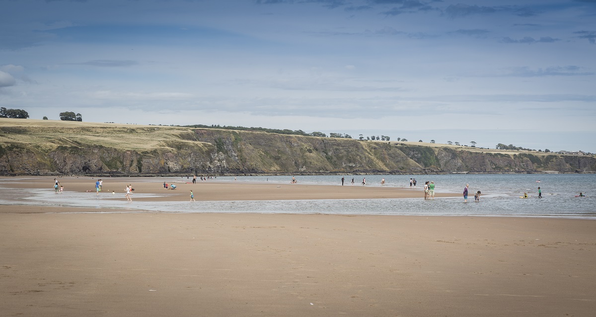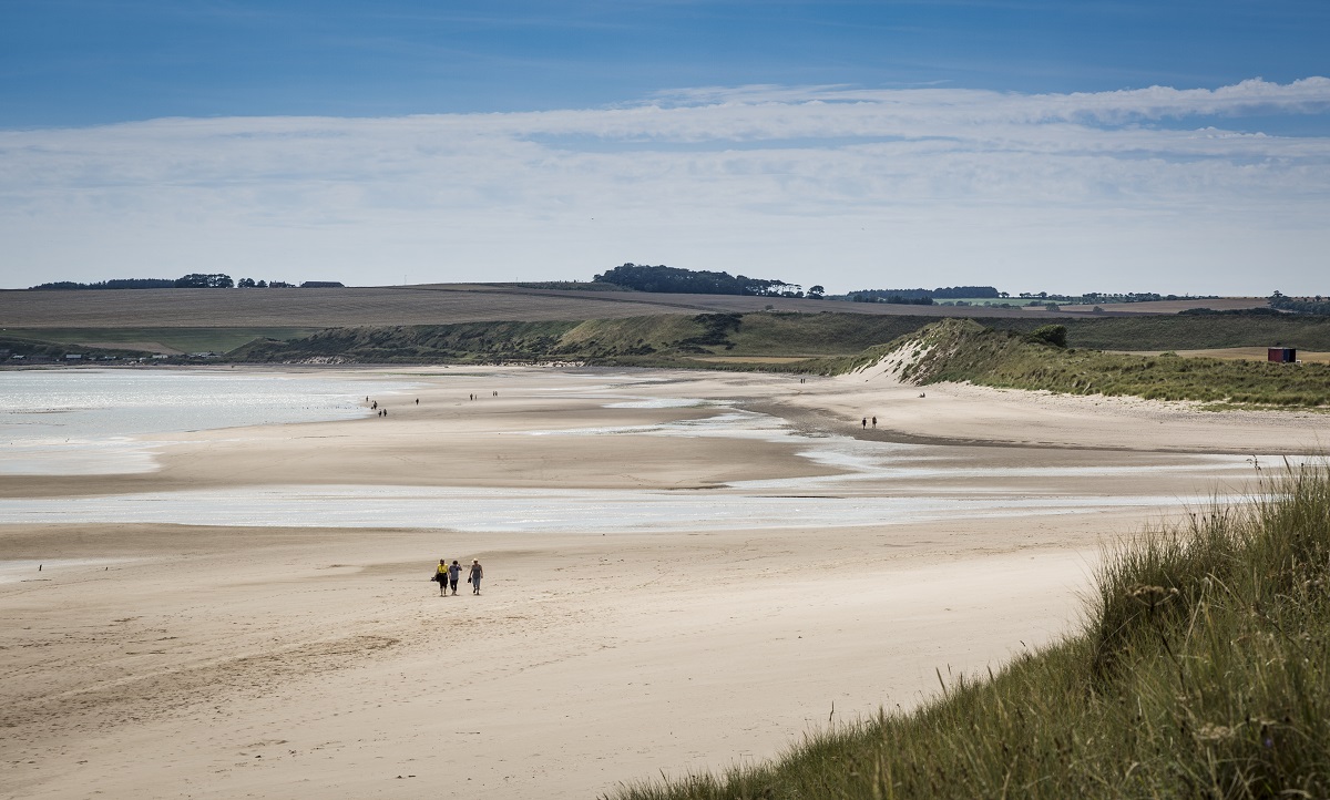 This stunning east-facing beach is backed by sand dunes and framed by low cliffs to the north and south. From its northern end at Boddin Point, located about three miles south of Montrose, Lunan Bay extends two miles south to Ethie Haven.