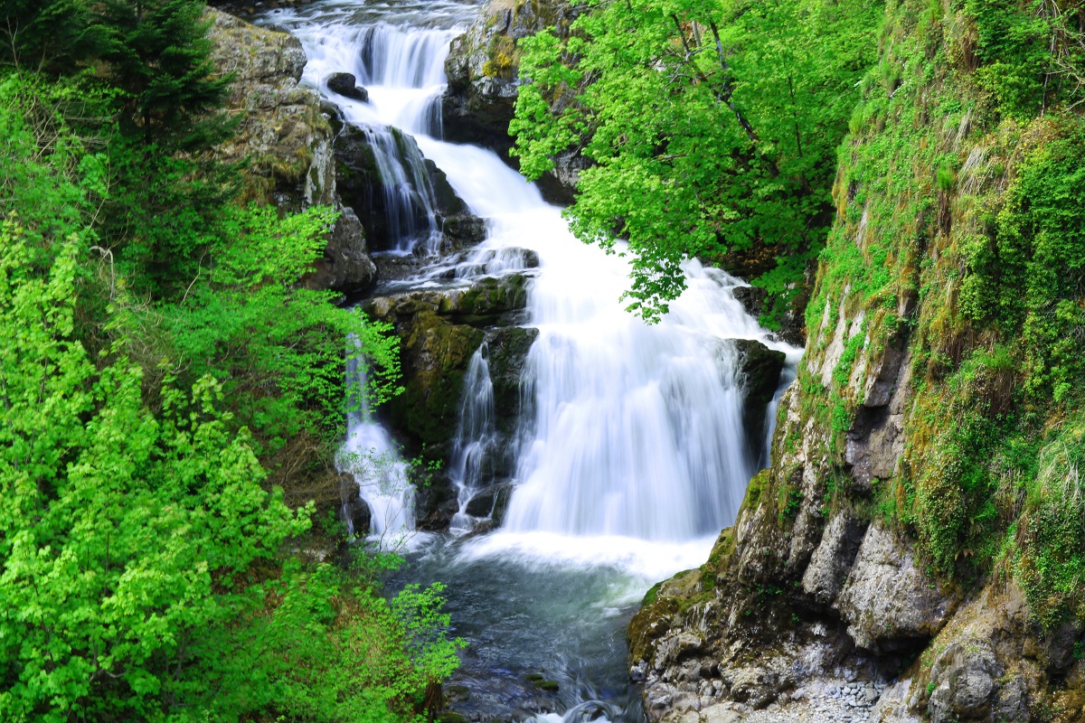 Please stay safe – the path to the waterfall passes close to the edge of a steep-sided gorge, and there are sheer drops of 150 feet down to the water below.