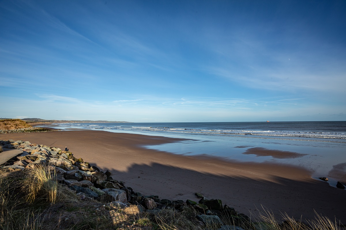 The golden sands of Montrose Beach stretch for three miles from Montrose to the North Esk River, with stunning views south to Scurdieness Lighthouse.