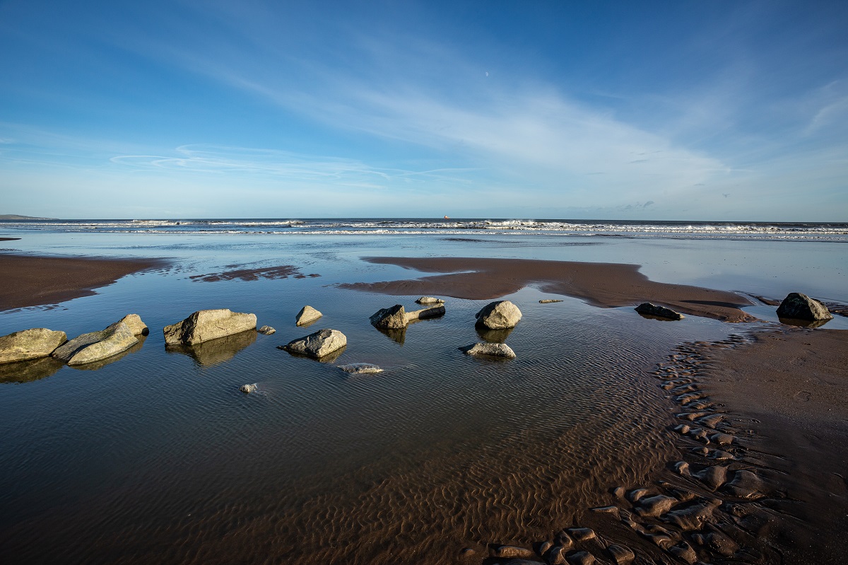 There is a circular walk that heads along the length of the beach before returning via an inland route, visiting the fine North Water viaduct – now part of a cycle path. The walk begins from the car park at the Seafront Splash area. If the tide is sufficiently out, you can start by heading down the steps outside the pavilion onto the beach; at higher tides you can head north along the promenade.