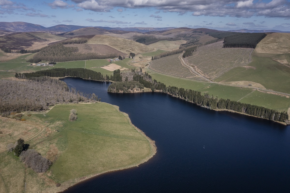 Opened in 1969, Backwater Reservoir links with Lintrathen Reservoir, 2½ miles (4 km) to the south, and supplies water to almost 300,000 people in Dundee, the towns of Angus as well as Coupar Angus, Blairgowrie and the Carse of Gowrie.